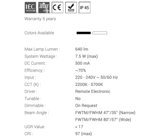 - High CRI: Exceptional color rendering (90+)