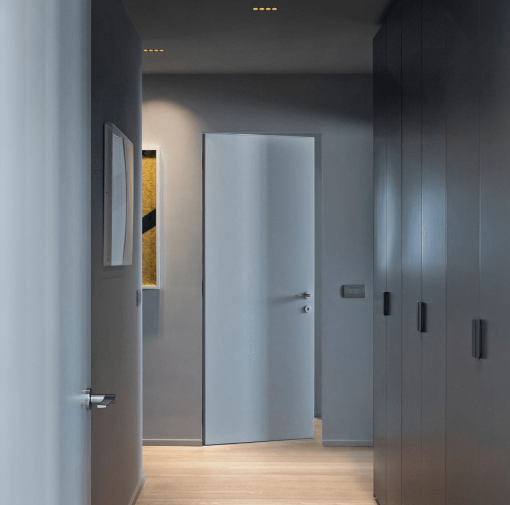 A ceiling recessed luminaire that achieves a pristine integration with the ceiling for a minimal and refined look.
