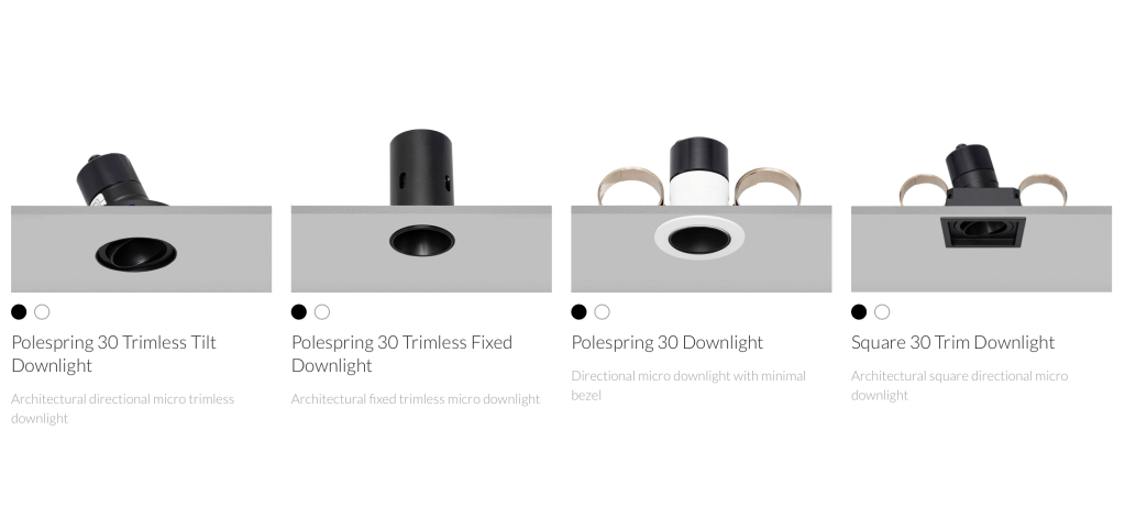 The Polespring Trimless Fixed 30 is a low glare directional architectural downlight with a tilt mechanism of 30degrees, suitable for both interior and marine applications. An extra deep black baffle and extra slim steel bezel allows for a lowglare and minimal architectural lighting solutions. The Polespring Trimless Fixed30 features a twist and lock LED engine mount and plugin LED driver for interchangeable components on site with no hand tools required.
