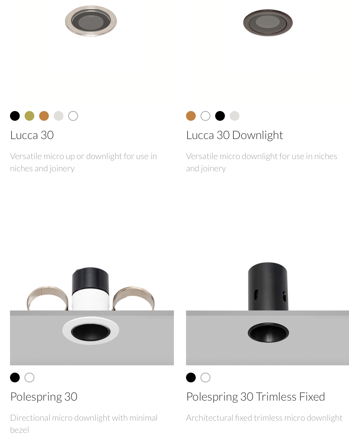 Revolutionary downlights program developed to control glare in countless applications. The unique patented optical system has been applied to multiple custom-made beamwidths for specific applications such as offices, shops and homes.